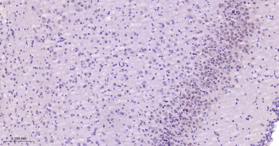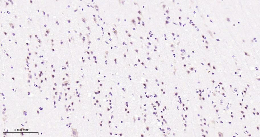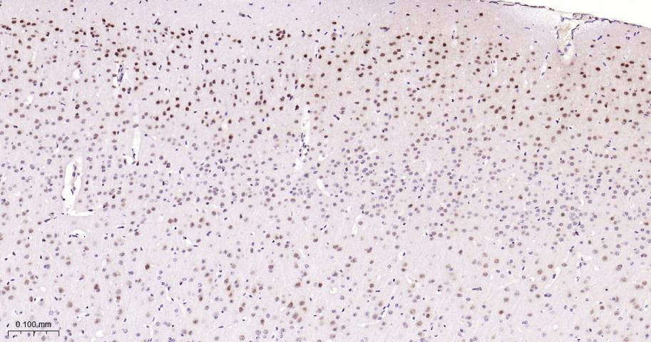 Paraformaldehyde-fixed, paraffin embedded Rat Cerebrum; Antigen retrieval by boiling in sodium citrate buffer (pH6.0) for 15 min; Antibody incubation with SOX11 Monoclonal Antibody, Unconjugated(bsm-60624R) at 1:200 overnight at 4°C, followed by conjugation to the bs-0295G-HRP and DAB (C-0010) staining.