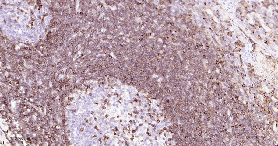 Paraformaldehyde-fixed, paraffin embedded Human Tonsil; Antigen retrieval by boiling in sodium citrate buffer (pH6.0) for 15 min; The section was incubated with CD50 Monoclonal Antibody, Unconjugated (bsm-60619R) at 1:200 overnight at 4°C, followed by conjugation to the bs-0295G-HRP and DAB (C-0010) staining.