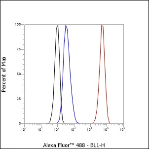 Unlabelled control: The cell without incubation with primary antibody and secondary antibody (Black line).