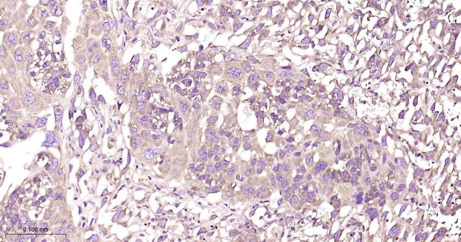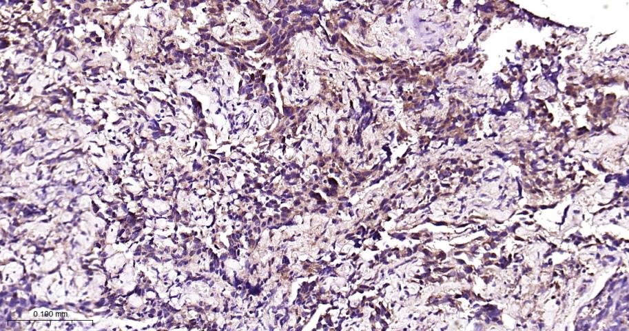 Paraformaldehyde-fixed, paraffin embedded Human Cervical Cancer; Antigen retrieval by boiling in sodium citrate buffer (pH6.0) for 15 min; Antibody incubation with RPS20 Monoclonal Antibody, Unconjugated(bsm-60503R) at 1:200 overnight at 4°C, followed by conjugation to the bs-0295G-HRP and DAB (C-0010) staining.