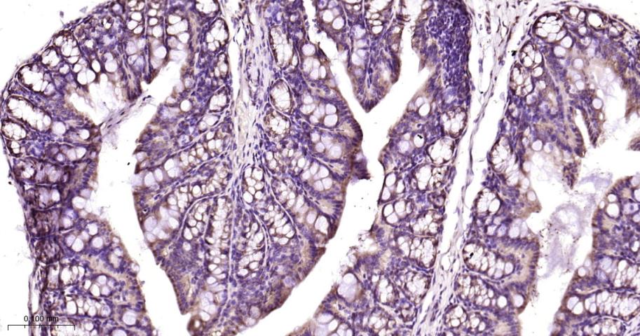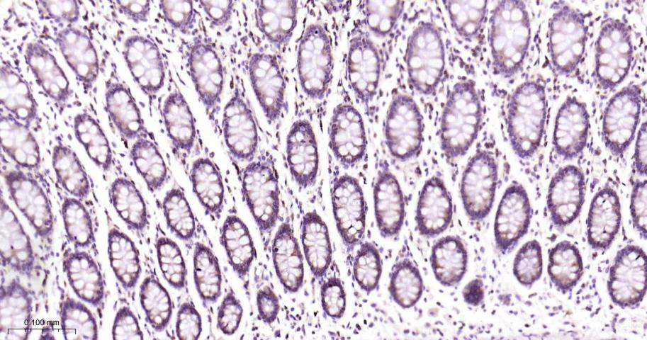 Paraformaldehyde-fixed, paraffin embedded Rat Colon; Antigen retrieval by boiling in sodium citrate buffer (pH6.0) for 15 min; Antibody incubation with RPS20 Monoclonal Antibody, Unconjugated(bsm-60503R) at 1:200 overnight at 4°C, followed by conjugation to the bs-0295G-HRP and DAB (C-0010) staining.