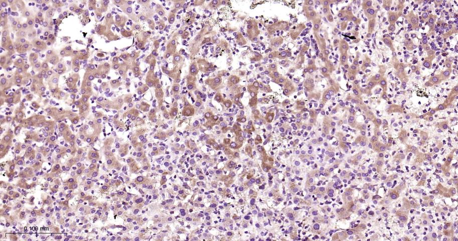 Paraformaldehyde-fixed, paraffin embedded Human Liver; Antigen retrieval by boiling in sodium citrate buffer (pH6.0) for 15 min; Antibody incubation with RPS20 Monoclonal Antibody, Unconjugated(bsm-60503R) at 1:200 overnight at 4°C, followed by conjugation to the bs-0295G-HRP and DAB (C-0010) staining.
