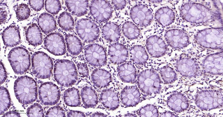 Paraformaldehyde-fixed, paraffin embedded Human Colon; Antigen retrieval by boiling in sodium citrate buffer (pH6.0) for 15 min; The section was incubated with DYNLL1 Monoclonal Antibody, Unconjugated (bsm-60439R) at 1:200 overnight at 4°C, followed by conjugation to the bs-0295G-HRP and DAB (C-0010) staining.