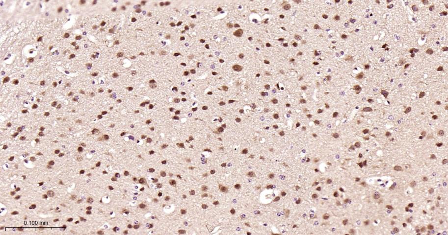 Paraformaldehyde-fixed, paraffin embedded Rat Cerebrum; Antigen retrieval by boiling in sodium citrate buffer (pH6.0) for 15 min; The section was incubated with DYNLL1 Monoclonal Antibody, Unconjugated (bsm-60439R) at 1:200 overnight at 4°C, followed by conjugation to the bs-0295G-HRP and DAB (C-0010) staining.