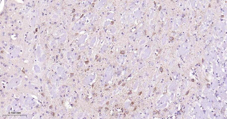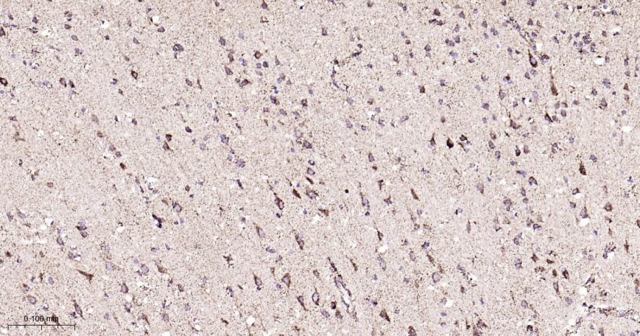 Paraformaldehyde-fixed, paraffin embedded Rat Cerebrum; Antigen retrieval by boiling in sodium citrate buffer (pH6.0) for 15 min; Antibody incubation with HSPE1 Monoclonal Antibody, Unconjugated(bsm-60471R) at 1:200 overnight at 4°C, followed by conjugation to the bs-0295G-HRP and DAB (C-0010) staining.