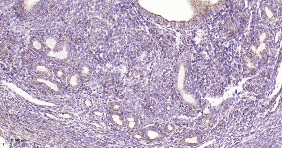 Paraformaldehyde-fixed, paraffin embedded Rat Uterus; Antigen retrieval by boiling in sodium citrate buffer (pH6.0) for 15 min; Antibody incubation with HSPE1 Monoclonal Antibody, Unconjugated(bsm-60471R) at 1:200 overnight at 4°C, followed by conjugation to the bs-0295G-HRP and DAB (C-0010) staining.