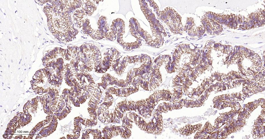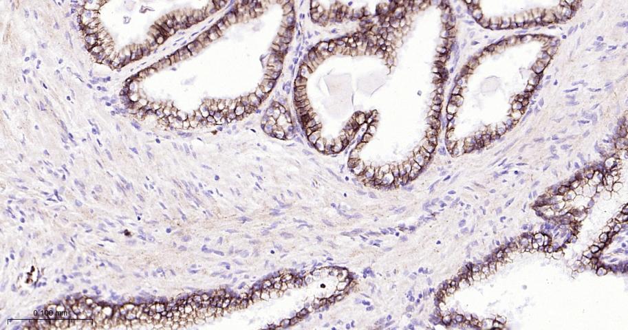 Paraformaldehyde-fixed, paraffin embedded Mouse Prostate; Antigen retrieval by boiling in sodium citrate buffer (pH6.0) for 15 min; Antibody incubation with CTNND1 Monoclonal Antibody, Unconjugated(bsm-60229R) at 1:200 overnight at 4°C, followed by conjugation to the bs-0295G-HRP and DAB (C-0010) staining.