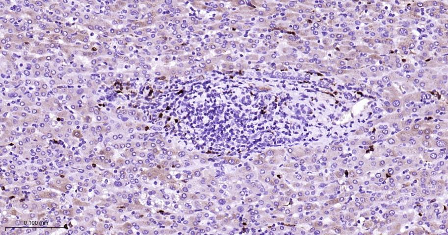 Paraformaldehyde-fixed, paraffin embedded Human Liver; Antigen retrieval by boiling in sodium citrate buffer (pH6.0) for 15 min; Antibody incubation with Lysozyme Monoclonal Antibody, Unconjugated(bsm-60643R) at 1:200 overnight at 4°C, followed by conjugation to the bs-0295G-HRP and DAB (C-0010) staining.