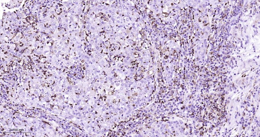 Paraformaldehyde-fixed, paraffin embedded Human Gastric Cancer; Antigen retrieval by boiling in sodium citrate buffer (pH6.0) for 15 min; Antibody incubation with Lysozyme Monoclonal Antibody, Unconjugated(bsm-60643R) at 1:200 overnight at 4°C, followed by conjugation to the bs-0295G-HRP and DAB (C-0010) staining.