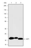 Lysate: 1: HepG2, 2: 293T, 3: Mouse kidney
