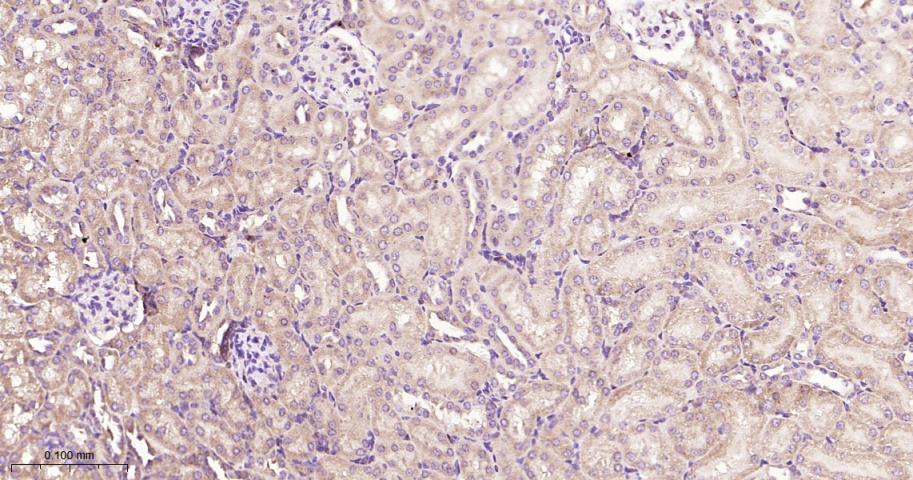 Paraformaldehyde-fixed, paraffin embedded Mouse kidney; Antigen retrieval by boiling in sodium citrate buffer (pH6.0) for 15 min; Antibody incubation with SQSTM1/p62 Monoclonal Antibody, Unconjugated(bsm-60709R) at 1:200 overnight at 4°C, followed by conjugation to the bs-0295G-HRP and DAB (C-0010) staining.