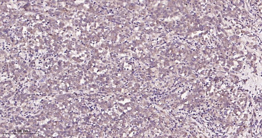 Paraformaldehyde-fixed, paraffin embedded Human gastric cancer; Antigen retrieval by boiling in sodium citrate buffer (pH6.0) for 15 min; Antibody incubation with SQSTM1/p62 Monoclonal Antibody, Unconjugated(bsm-60709R) at 1:200 overnight at 4°C, followed by conjugation to the bs-0295G-HRP and DAB (C-0010) staining.