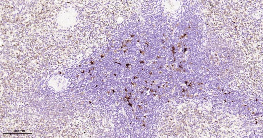 Paraformaldehyde-fixed, paraffin embedded Mouse spleen; Antigen retrieval by boiling in sodium citrate buffer (pH6.0) for 15 min; Antibody incubation with SQSTM1/p62 Monoclonal Antibody, Unconjugated(bsm-60709R) at 1:200 overnight at 4°C, followed by conjugation to the bs-0295G-HRP and DAB (C-0010) staining.