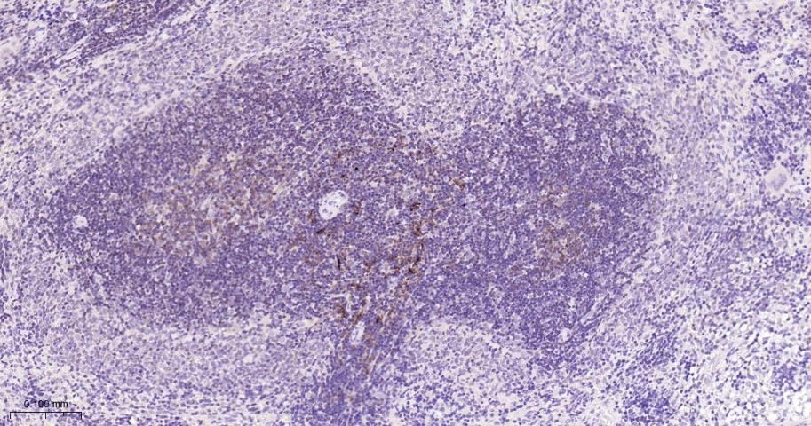 Paraformaldehyde-fixed, paraffin embedded Human spleen; Antigen retrieval by boiling in sodium citrate buffer (pH6.0) for 15 min; Antibody incubation with SQSTM1/p62 Monoclonal Antibody, Unconjugated(bsm-60709R) at 1:200 overnight at 4°C, followed by conjugation to the bs-0295G-HRP and DAB (C-0010) staining.