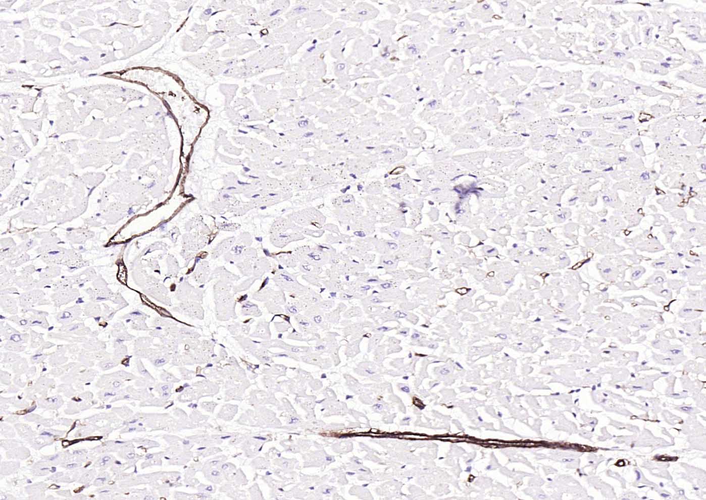Paraformaldehyde-fixed, paraffin embedded (human heart); Antigen retrieval by boiling in sodium citrate buffer (pH6.0) for 15min; Block endogenous peroxidase by 3% hydrogen peroxide for 20 minutes; Blocking buffer (normal goat serum) at 37°C for 30min; Incubation with (CD39/ENTPD1) Monoclonal Antibody, Unconjugated (bsm-54043R) at 1:200 overnight at 4°C, followed by operating according to SP Kit(Rabbit) (sp-0023) instructionsand DAB staining.