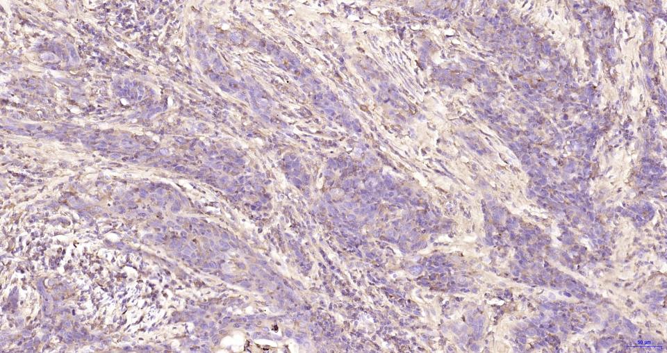 Paraformaldehyde-fixed, paraffin embedded Human Cervical Cancer; Antigen retrieval by boiling in sodium citrate buffer (pH6.0) for 15 min; Antibody incubation with AACT Monoclonal Antibody, Unconjugated(bsm-60780R) at 1:200 overnight at 4°C, followed by conjugation to the SP Kit (Rabbit, SP-0023)and DAB (C-0010) staining.