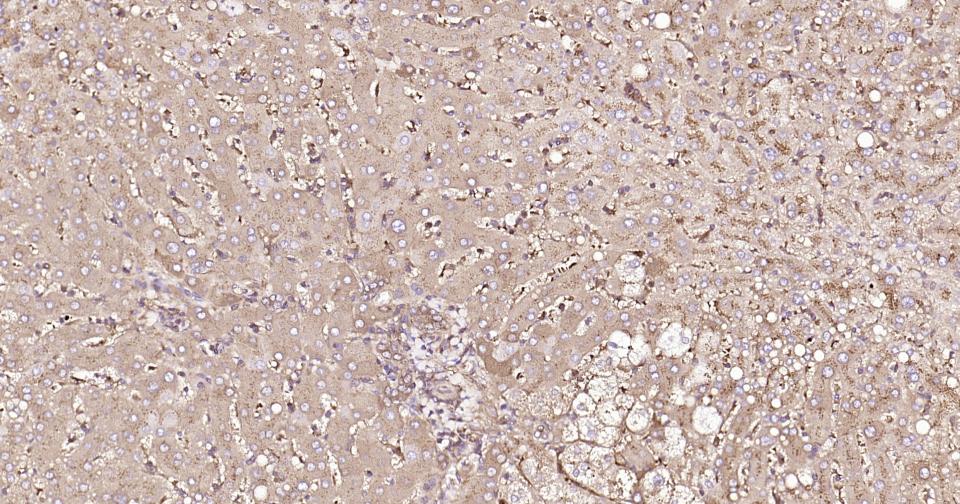 Paraformaldehyde-fixed, paraffin embedded Human Liver; Antigen retrieval by boiling in sodium citrate buffer (pH6.0) for 15 min; Antibody incubation with AACT Monoclonal Antibody, Unconjugated(bsm-60780R) at 1:200 overnight at 4°C, followed by conjugation to the SP Kit (Rabbit, SP-0023) and DAB (C-0010) staining.