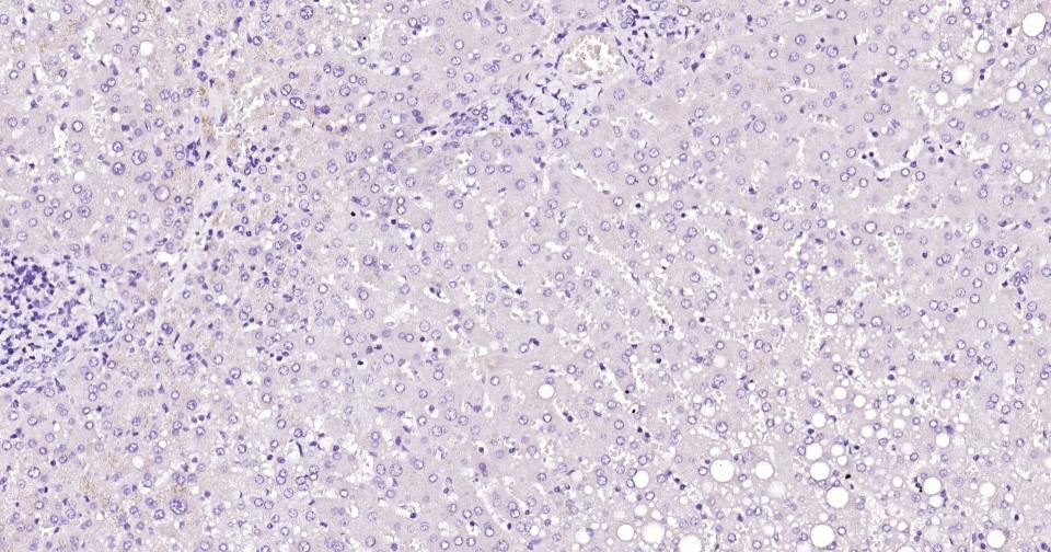 (Negative control) Paraformaldehyde-fixed, paraffin embedded Human Liver ; Antigen retrieval by boiling in sodium citrate buffer (pH6.0) for 15 min; Antibody incubation with AFP Monoclonal Antibody, Unconjugated(bsm-60789R) at 1:800 overnight at 4°C, followed by conjugation to the SP Kit (Rabbit, SP-0023) and DAB (C-0010) staining.