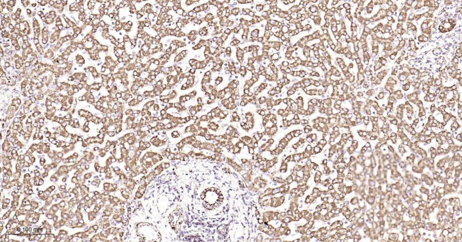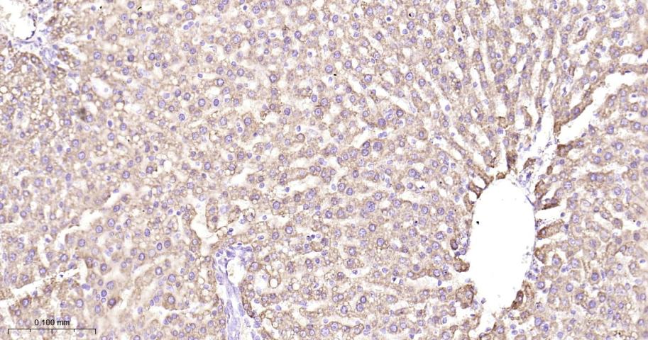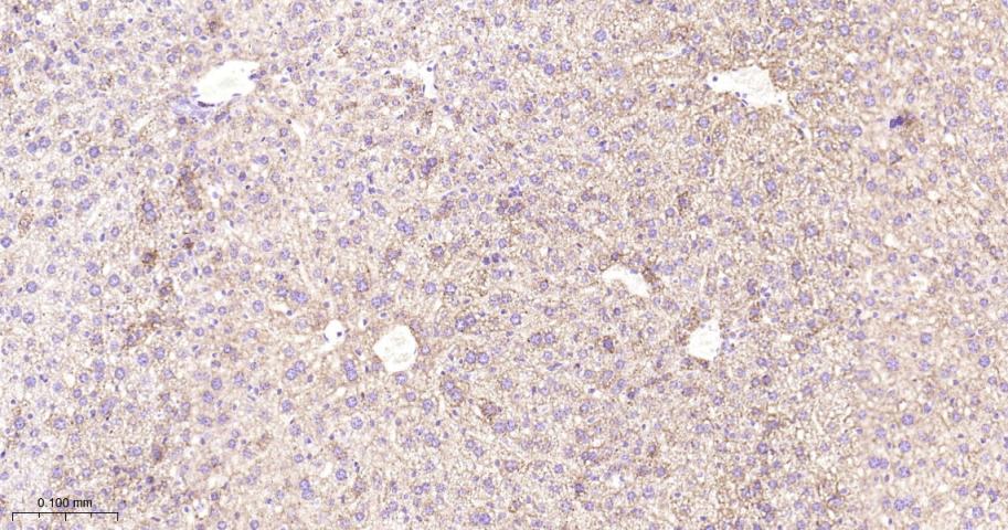 Paraformaldehyde-fixed, paraffin embedded Mouse Liver; Antigen retrieval by boiling in sodium citrate buffer (pH6.0) for 15 min; Antibody incubation with ATPB Monoclonal Antibody, Unconjugated(bsm-52904R) at 1:200 overnight at 4°C, followed by conjugation to the bs-0295G-HRP and DAB (C-0010) staining.