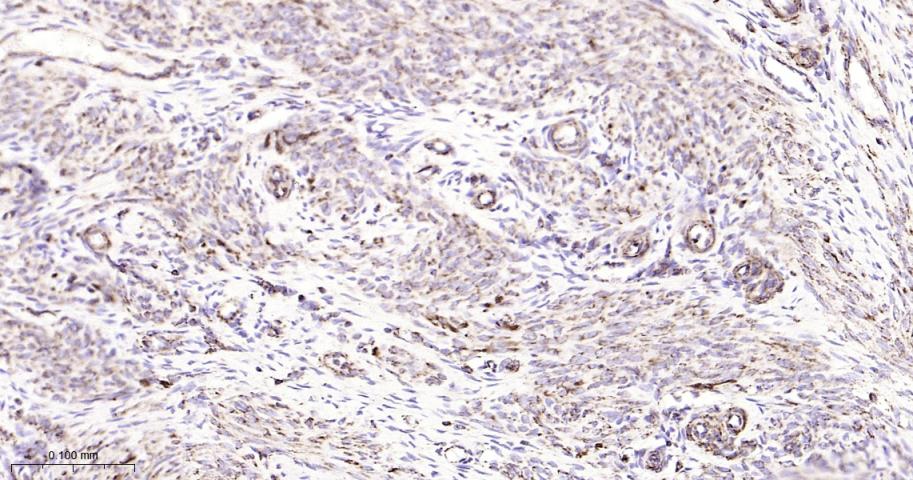 Paraformaldehyde-fixed, paraffin embedded Human Uterus; Antigen retrieval by boiling in sodium citrate buffer (pH6.0) for 15 min; Antibody incubation with ATPB Monoclonal Antibody, Unconjugated(bsm-52904R) at 1:200 overnight at 4°C, followed by conjugation to the bs-0295G-HRP and DAB (C-0010) staining.