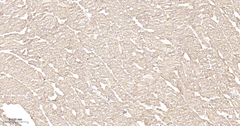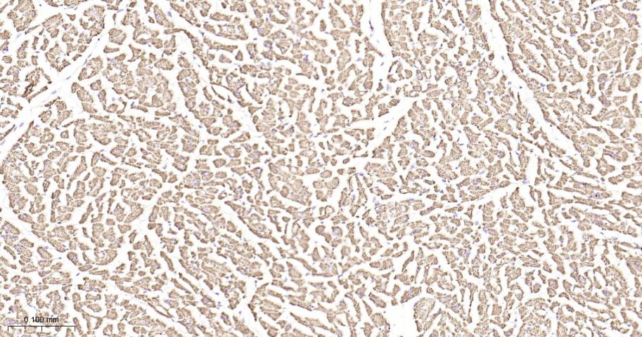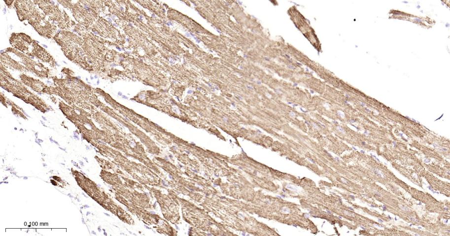 Paraformaldehyde-fixed, paraffin embedded Rat Heart; Antigen retrieval by boiling in sodium citrate buffer (pH6.0) for 15 min; Antibody incubation with ATPB Monoclonal Antibody, Unconjugated(bsm-52904R) at 1:200 overnight at 4°C, followed by conjugation to the bs-0295G-HRP and DAB (C-0010) staining.