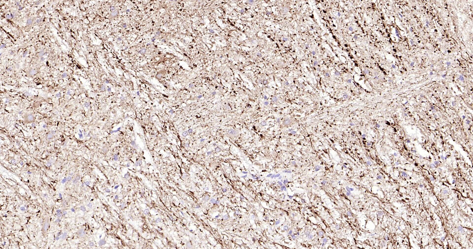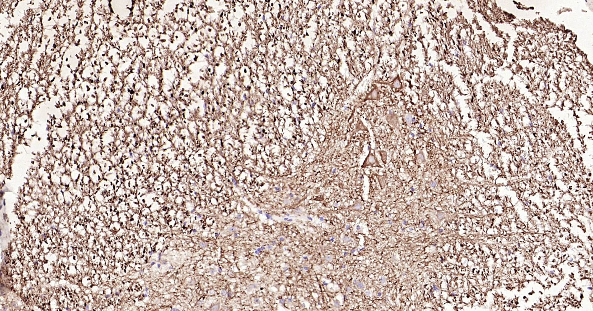 Immunohistochemical analysis of paraffin embedded rat spinal cord tissue slide using IHC0129 (NF-L IHC Kit).