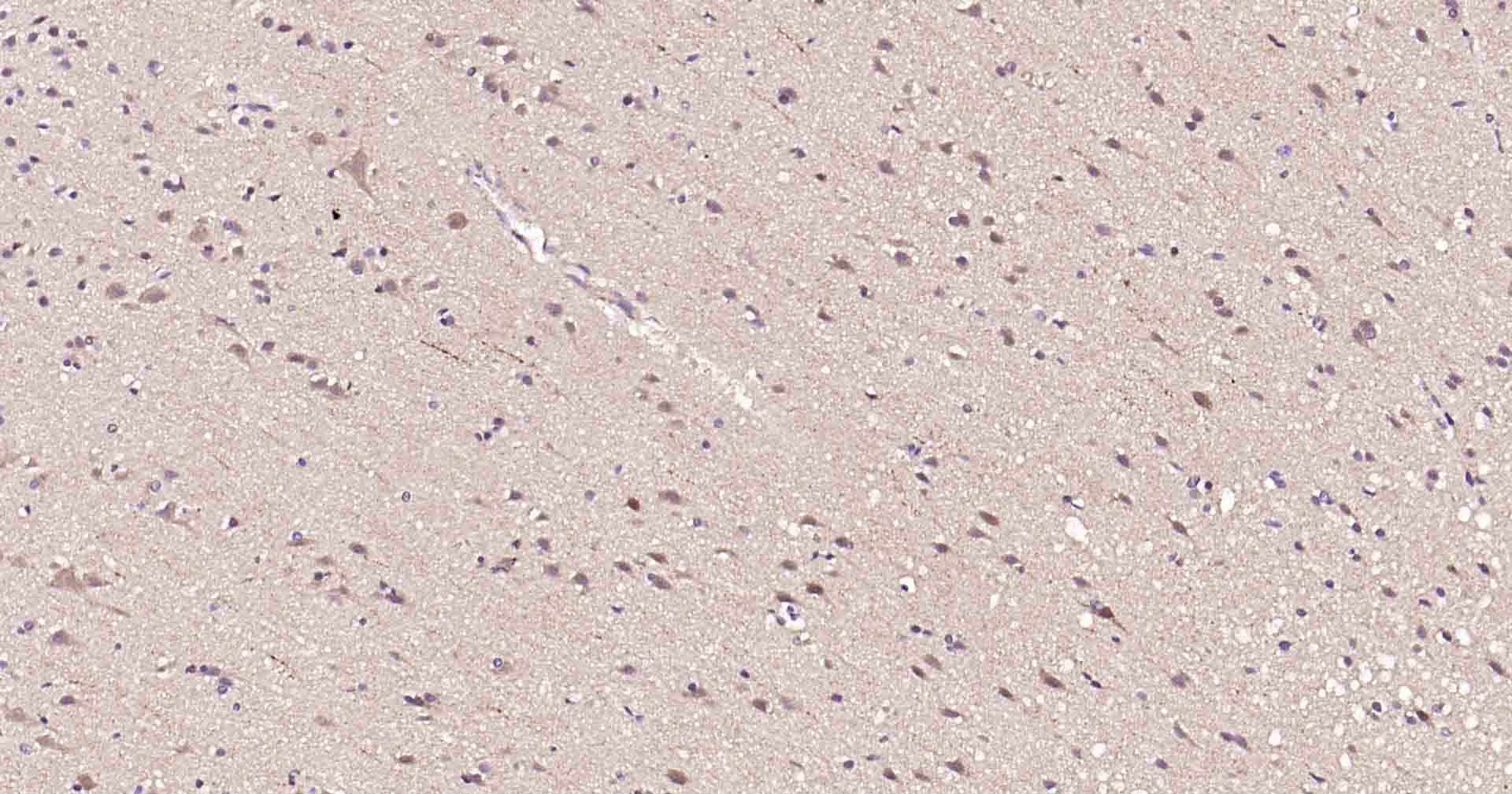 Paraformaldehyde-fixed, paraffin embedded Human Cerebrum; Antigen retrieval by boiling in sodium citrate buffer (pH6.0) for 15 min; Antibody incubation with Beclin 1 Monoclonal Antibody, Unconjugated(bsm-41365R) at 1:50 overnight at 4°C, followed by conjugation to the SP Kit (Rabbit, SP-0023) and DAB (C-0010) staining.