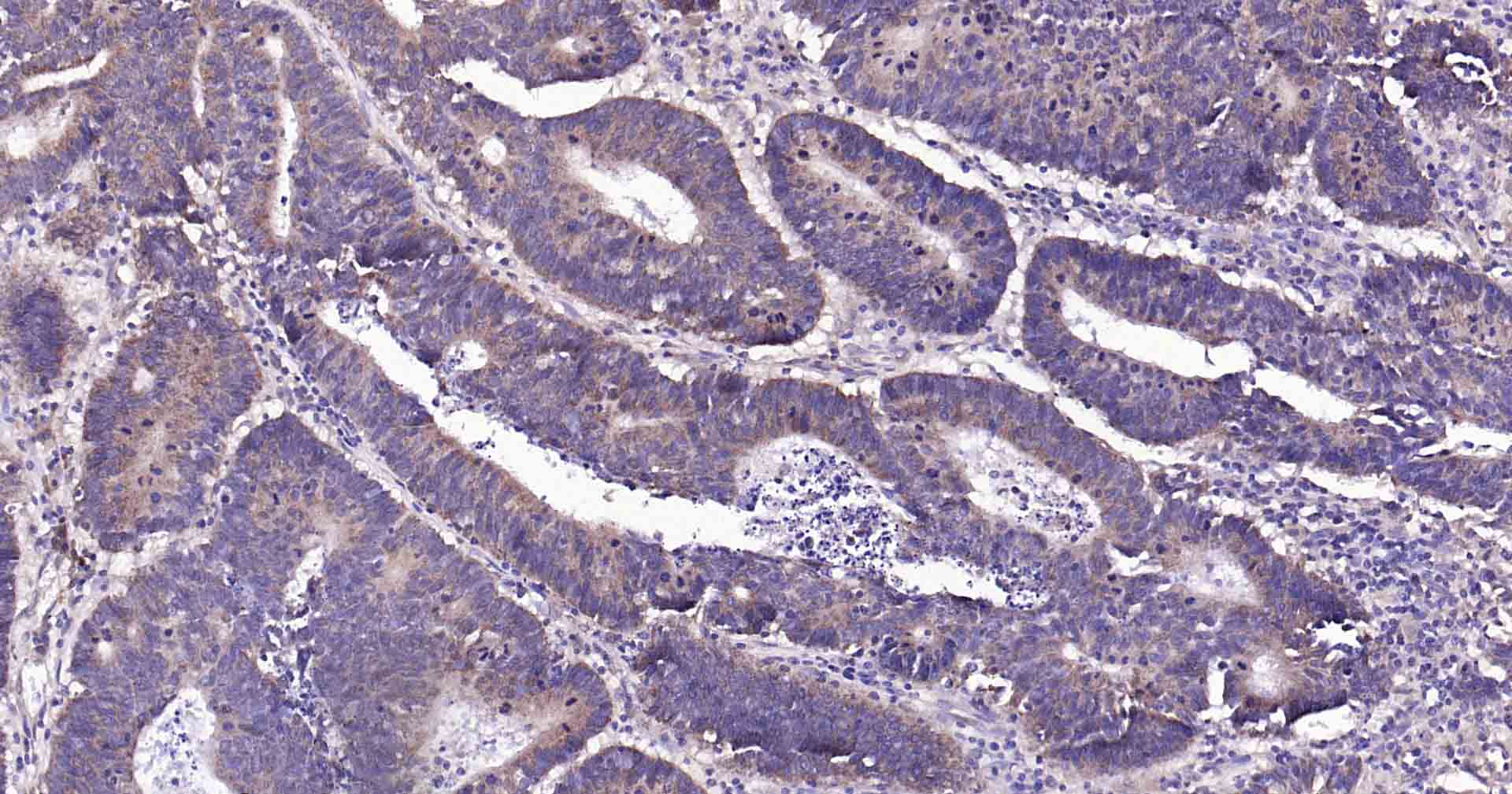 Paraformaldehyde-fixed, paraffin embedded Human Colon Cancer; Antigen retrieval by boiling in sodium citrate buffer (pH6.0) for 15 min; Antibody incubation with Beclin 1 Monoclonal Antibody, Unconjugated(bsm-41365R) at 1:50 overnight at 4°C, followed by conjugation to the SP Kit (Rabbit, SP-0023) and DAB (C-0010) staining.