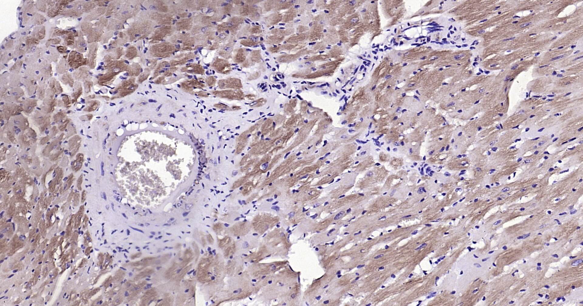 Immunohistochemical analysis of paraffin embedded rat heart tissue slide using IHC0136 (MYL2 IHC Kit).