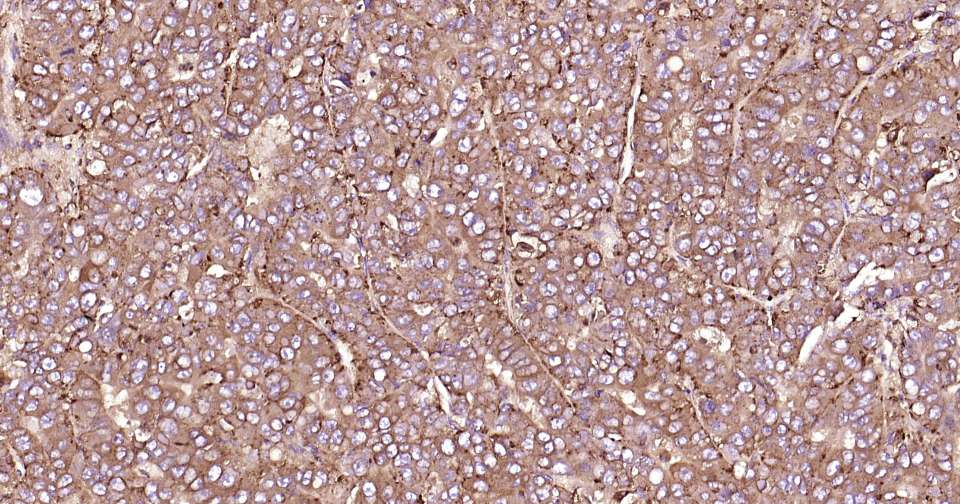 Immunohistochemical analysis of paraffin embedded human hepatocellular carcinoma tissue slide using IHC0137H (Human LAMP1 Kit).