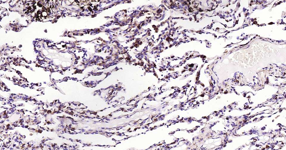 Immunohistochemical analysis of paraffin embedded human lung tissue slide using IHC0137H (Human LAMP1 Kit).