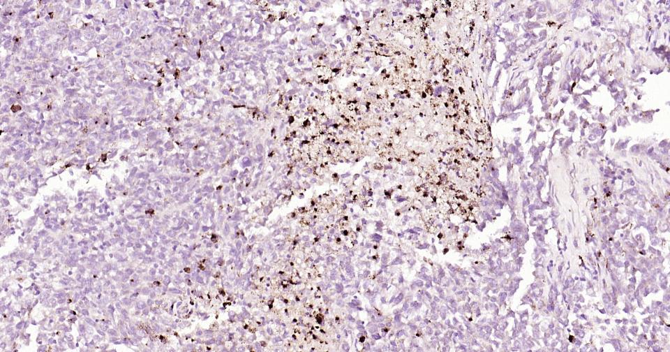 Paraformaldehyde-fixed, paraffin embedded Human Lung Cancer; Antigen retrieval by boiling in sodium citrate buffer (pH6.0) for 15 min; Antibody incubation with Osteopontin? Monoclonal Antibody, Unconjugated(bsm-43600R) at 1:200 overnight at 4°C, followed by conjugation to the SP Kit (Rabbit, SP-0023)and DAB (C-0010) staining.