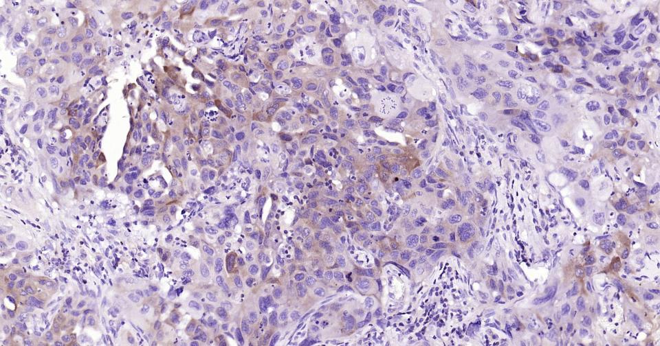 Paraformaldehyde-fixed, paraffin embedded Human Lung Cancer; Antigen retrieval by boiling in sodium citrate buffer (pH6.0) for 15 min; Antibody incubation with IKB alpha Monoclonal Antibody, Unconjugated(bsm-56204R) at 1:200 overnight at 4°C, followed by conjugation to the bs-0295G-HRP and DAB (C-0010) staining.