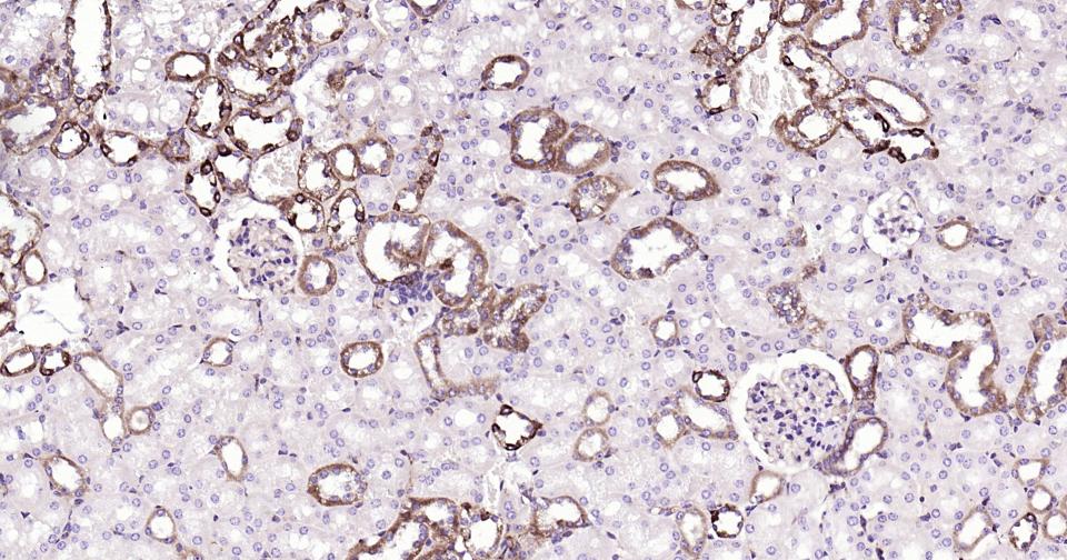 Paraformaldehyde-fixed, paraffin embedded Human Kidney; Antigen retrieval by boiling in sodium citrate buffer (pH6.0) for 15 min; Antibody incubation with IKB alpha Monoclonal Antibody, Unconjugated(bsm-56204R) at 1:200 overnight at 4°C, followed by conjugation to the bs-0295G-HRP and DAB (C-0010) staining.