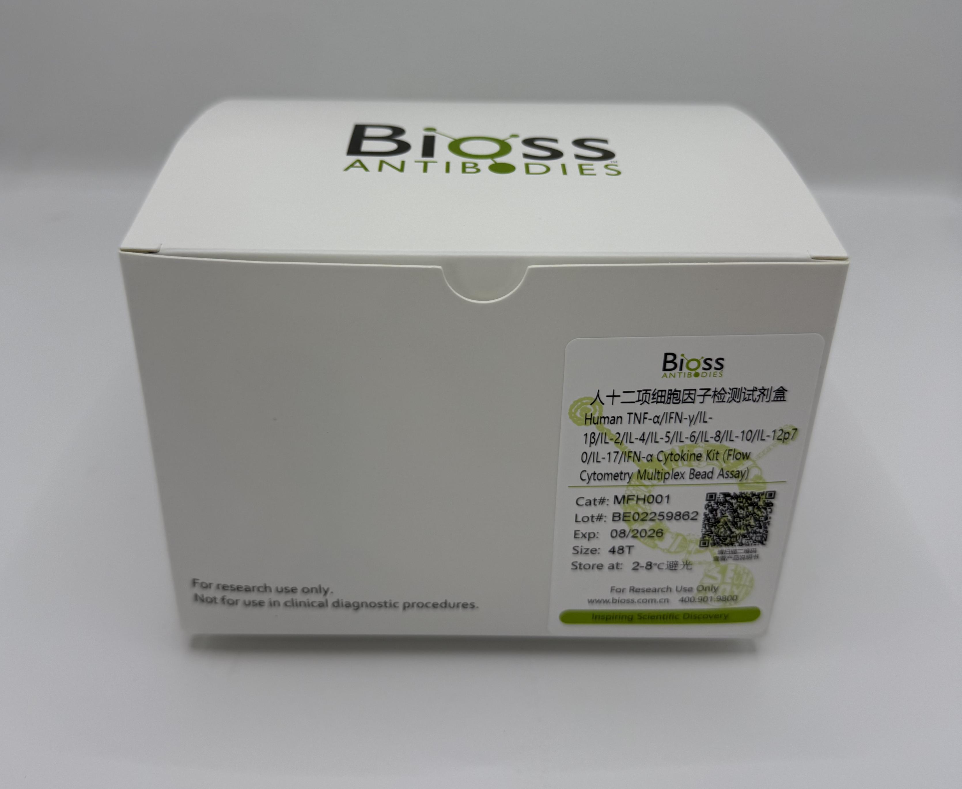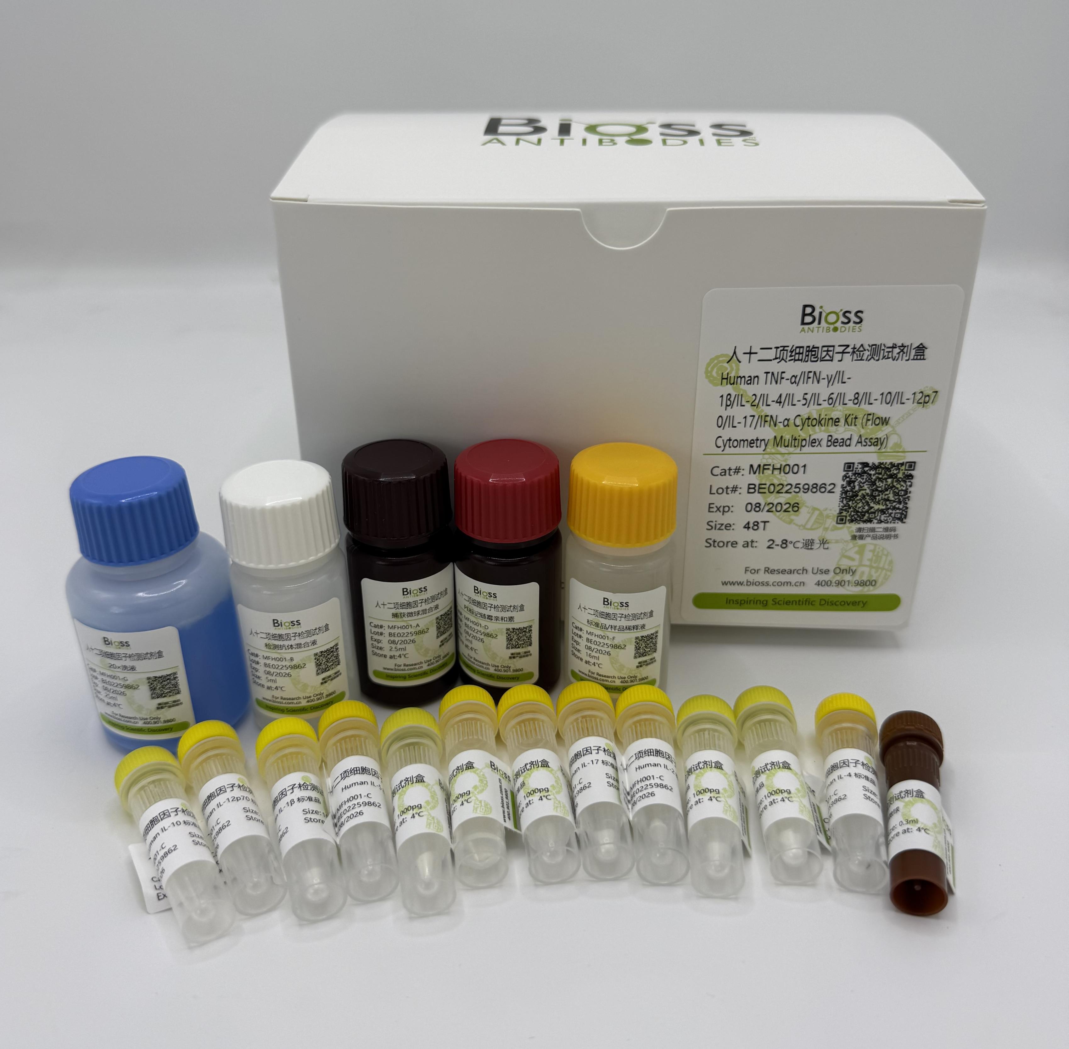 產(chǎn)品介紹 本試劑盒采用CBA多因子流式檢測(cè)技術(shù),微球熒光編碼不同,不同微球群上包被TNF-α/IFN-γ/IL- 1β/IL-2/IL-4/IL-5/IL-6/IL-8/IL-10/IL-12p70/IL-17/IFN-α特異性抗體,與待測(cè)樣本孵育,可與樣本中TNF-α/IFN-γ/IL-1β/IL-2/IL-4/IL-5/IL-6/IL-8/IL-10/IL-12p70/IL-17/IFN-α特異性結(jié)合,之后加入生物素標(biāo)記的檢測(cè)抗體,形成抗體包被微球-細(xì)胞因子-檢測(cè)抗體的免疫復(fù)合物;最后加入藻紅蛋白標(biāo)記的鏈霉親和素,與生物素結(jié)合,通過(guò)流式細(xì)胞儀檢測(cè),獲得待測(cè)物的熒光強(qiáng)度,熒光強(qiáng)度與樣本中TNF-α/IFN-γ/IL-1β/IL-2/IL-4/IL-5/IL- 6/IL-8/IL-10/IL-12p70/IL-17/IFN-α 的含量成正比,最后結(jié)合這十二種細(xì)胞因子標(biāo)準(zhǔn)品的標(biāo)準(zhǔn)曲線,從而實(shí)現(xiàn)對(duì)同一份樣本中TNF-α/IFN-γ/IL-1β/IL-2/IL-4/IL-5/IL-6/IL-8/IL-10/IL-12p70/IL-17/IFN-α的定量檢測(cè)。從而輔助判斷機(jī)體的免疫功能狀態(tài)。 預(yù)期用途 檢測(cè)人體血清血漿和培養(yǎng)上清中TNF-α/IFN-γ/IL-1β/IL-2/IL-4/IL-5/IL-6/IL-8/IL-10/IL-12p70/IL-17/IFN-α的表達(dá)水平。 試劑盒組成