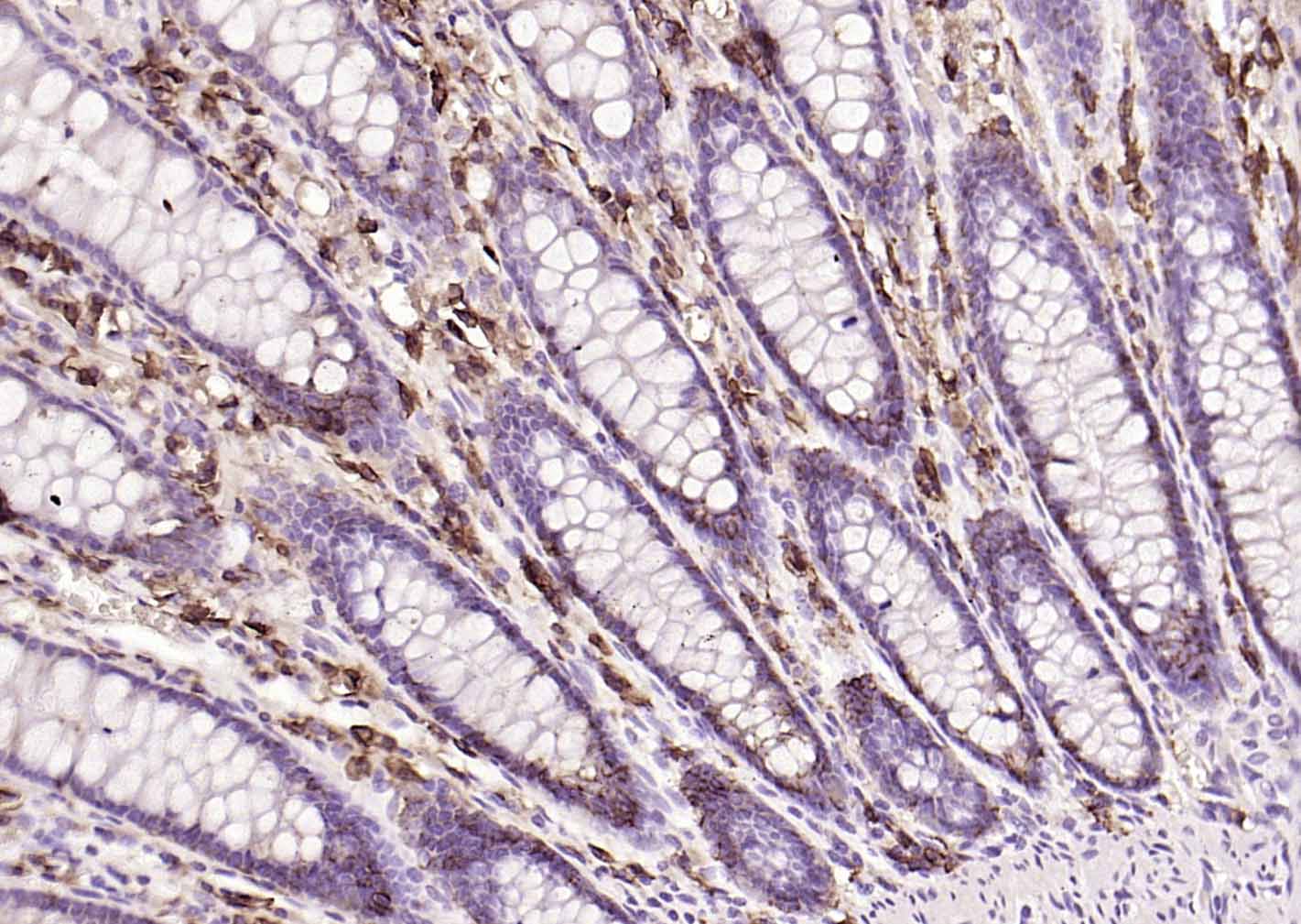 Paraformaldehyde-fixed, paraffin embedded (human colon); Antigen retrieval by boiling in sodium citrate buffer (pH6.0) for 15min; Block endogenous peroxidase by 3% hydrogen peroxide for 20 minutes; Blocking buffer (normal goat serum) at 37°C for 30min; Incubation with (CD138) Monoclonal Antibody, Unconjugated (bsm-60902R) at 1:200 overnight at 4°C, followed by operating according to SP Kit(Rabbit) (sp-0023) instructionsand DAB staining.