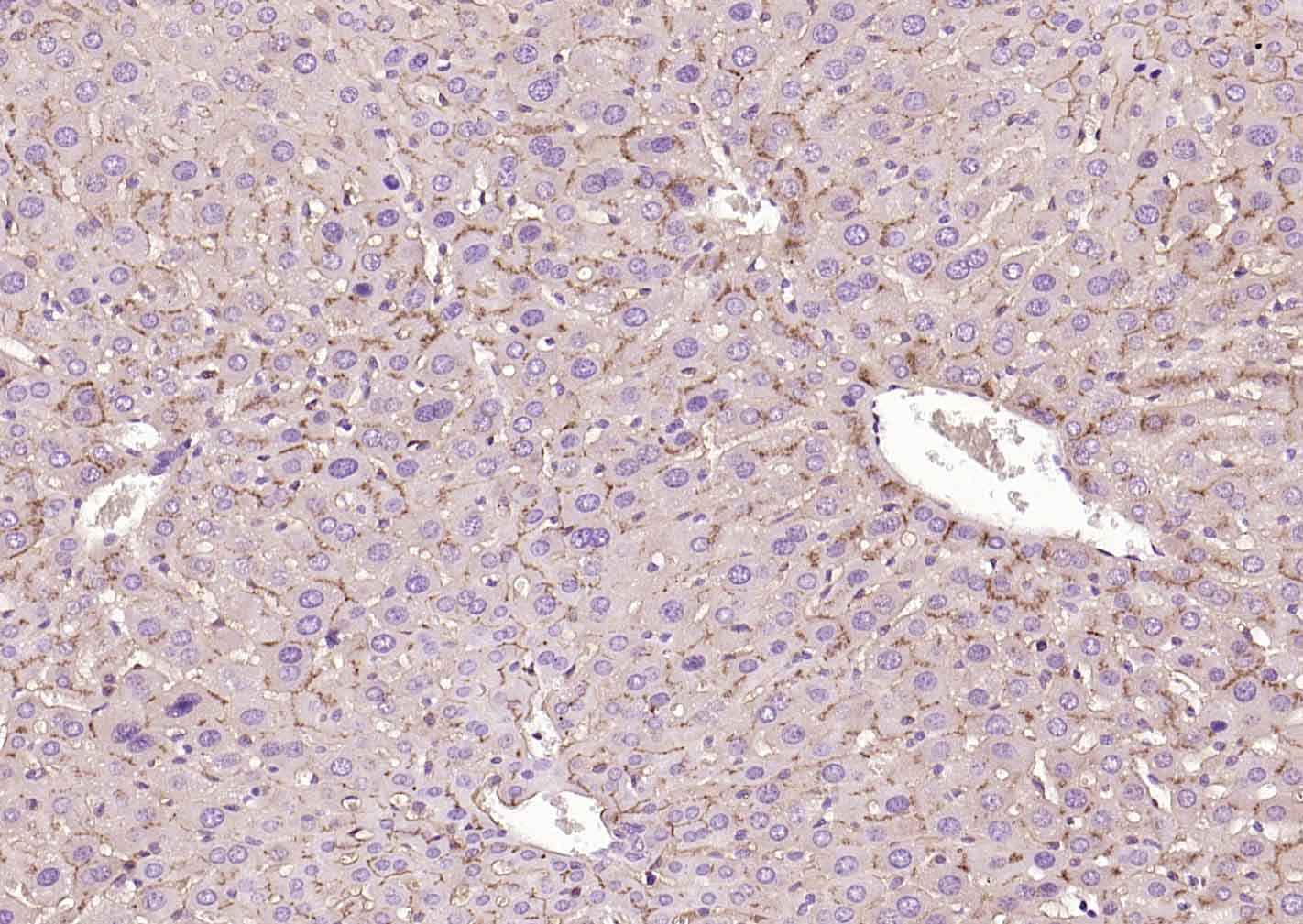 Paraformaldehyde-fixed, paraffin embedded (Mouse liver); Antigen retrieval by boiling in sodium citrate buffer (pH6.0) for 15min; Block endogenous peroxidase by 3% hydrogen peroxide for 20 minutes; Blocking buffer (normal goat serum) at 37°C for 30min; Incubation with (CD26/DPP4) Monoclonal Antibody, Unconjugated (bsm-60915R) at 1:100 overnight at 4°C, followed by operating according to SP Kit(Rabbit) (sp-0023) instructionsand DAB staining.