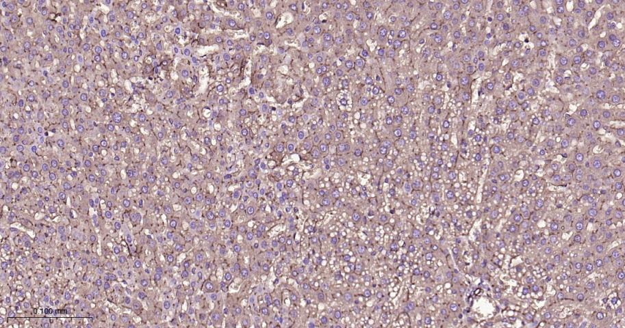 Paraformaldehyde-fixed, paraffin embedded Rat Liver; Antigen retrieval by boiling in sodium citrate buffer (pH6.0) for 15 min; The section was incubated with DPP4/CD26 Monoclonal Antibody, Unconjugated (bsm-60915R) at 1:200 overnight at 4°C, followed by conjugation to the bs-0295G-HRP and DAB (C-0010) staining.