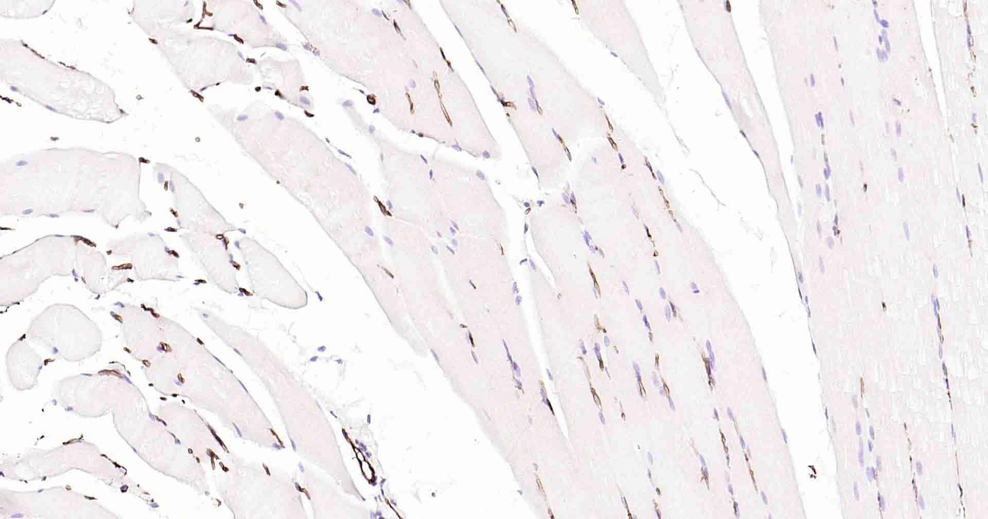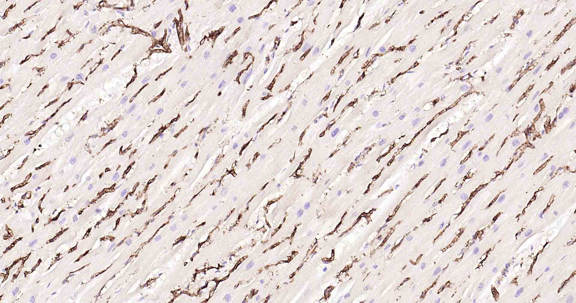 Paraformaldehyde-fixed, paraffin embedded Rat Heart; Antigen retrieval by boiling in sodium citrate buffer (pH6.0) for 15 min; Antibody incubation with AQP1 Monoclonal Antibody, Unconjugated(bsm-52909R) at 1:200 overnight at 4°C, followed by conjugation to the SP Kit(Rabbit, SP-0023) and DAB (C-0010) staining.