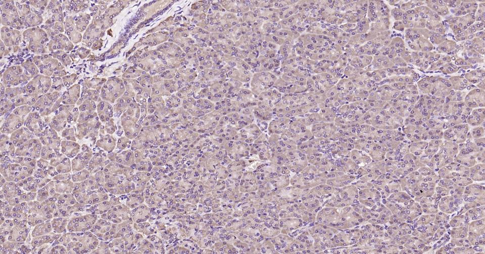 Paraformaldehyde-fixed, paraffin embedded Human Pancreas; Antigen retrieval by boiling in sodium citrate buffer (pH6.0) for 15 min; Antibody incubation with Glucose 6 phosphate isomerase Monoclonal Antibody, Unconjugated(bsm-61012R) at 1:250 overnight at 4°C, followed by conjugation to the SP Kit (Rabbit, SP-0023) and DAB (C-0010) staining.