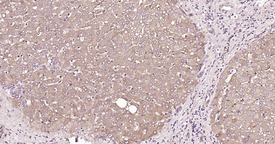 Paraformaldehyde-fixed, paraffin embedded Human Liver; Antigen retrieval by boiling in sodium citrate buffer (pH6.0) for 15 min; Antibody incubation with Glucose 6 phosphate isomerase Monoclonal Antibody, Unconjugated(bsm-61012R) at 1:250 overnight at 4°C, followed by conjugation to the SP Kit (Rabbit, SP-0023) and DAB (C-0010) staining.