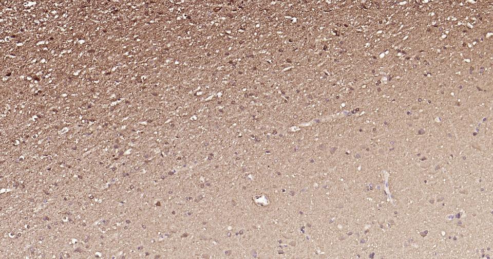 Paraformaldehyde-fixed, paraffin embedded Rat Cerebrum; Antigen retrieval by boiling in sodium citrate buffer (pH6.0) for 15 min; Antibody incubation with PIK3R3 Monoclonal Antibody, Unconjugated(bsm-61060R) at 1:300 overnight at 4°C, followed by conjugation to the SP Kit (Rabbit, SP-0023) and DAB (C-0010) staining.
