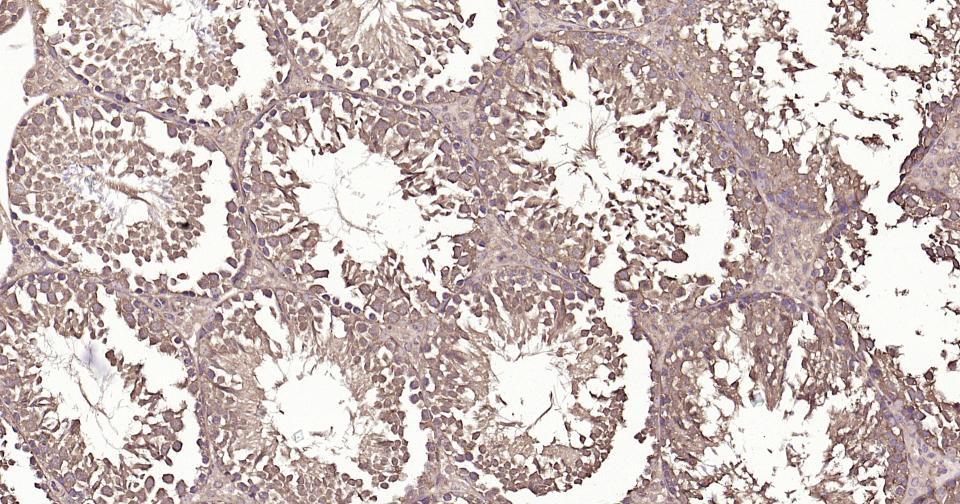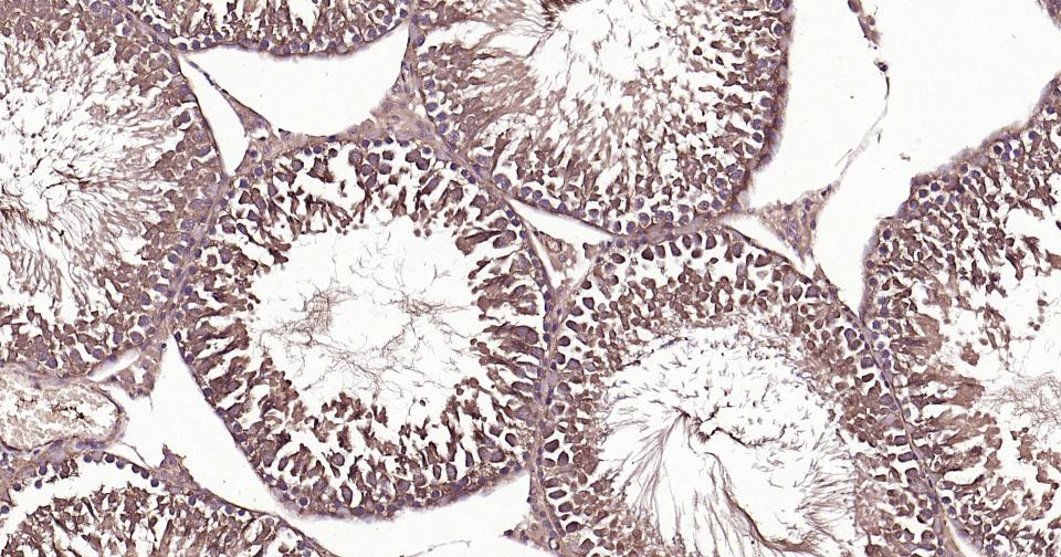 Paraformaldehyde-fixed, paraffin embedded Mouse Testicles; Antigen retrieval by boiling in sodium citrate buffer (pH6.0) for 15 min; Antibody incubation with PIK3R3 Monoclonal Antibody, Unconjugated(bsm-61060R) at 1:300 overnight at 4°C, followed by conjugation to the SP Kit (Rabbit, SP-0023) and DAB (C-0010) staining.