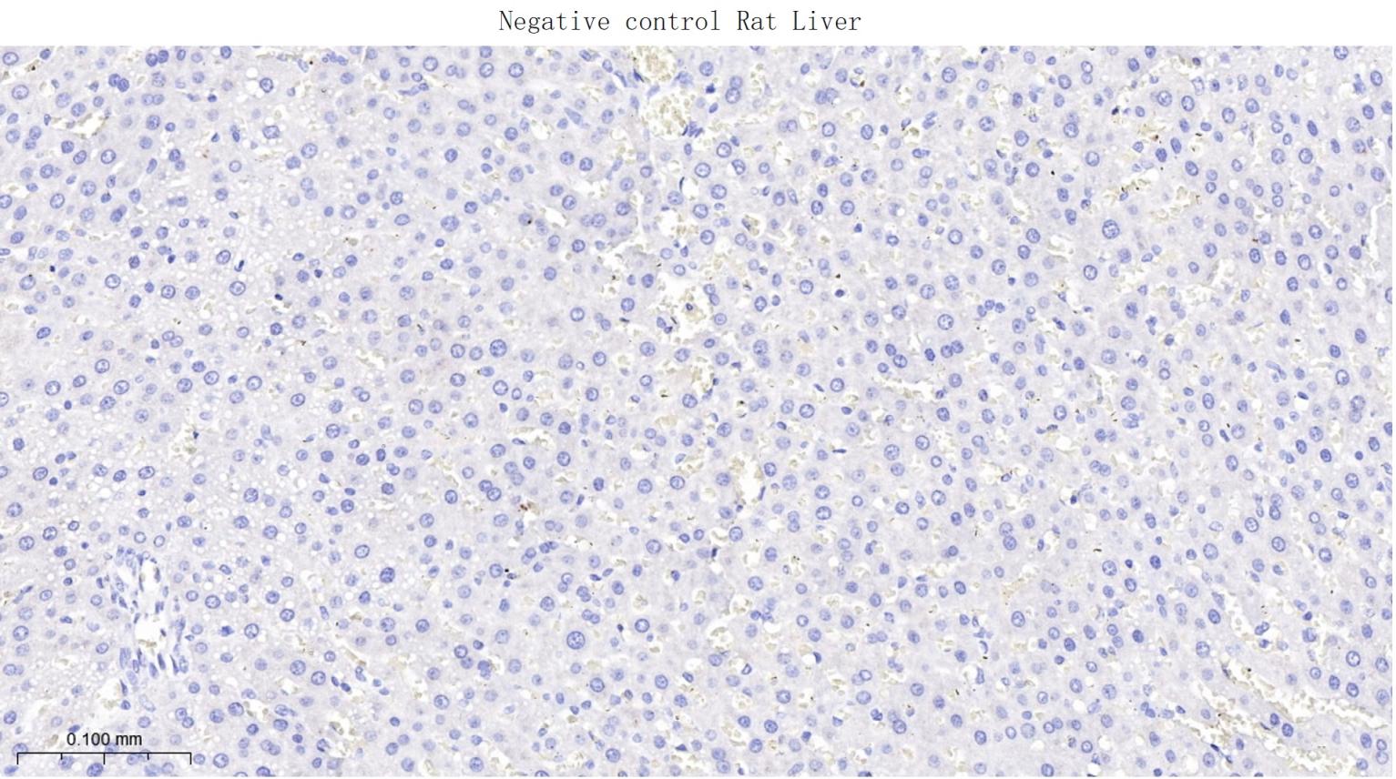 (Negative control) Paraformaldehyde-fixed, paraffin embedded Rat Liver; Antigen retrieval by boiling in sodium citrate buffer (pH6.0) for 15 min; The section was incubated with Alpha Actinin 2 Monoclonal Antibody, Unconjugated (bsm-52812R) at 1:200 overnight at 4°C, followed by conjugation to the bs-0295G-HRP and DAB (C-0010) staining.
