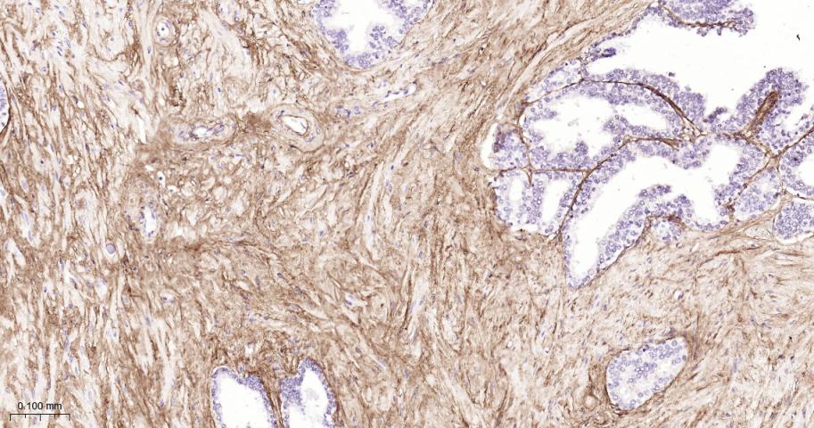 Paraformaldehyde-fixed, paraffin embedded Human Prostate Cancer; Antigen retrieval by boiling in sodium citrate buffer (pH6.0) for 15 min; The section was incubated with Collagen III Monoclonal Antibody, Unconjugated (bsm-54793R) at 1:500 overnight at 4°C, followed by conjugation to the bs-0295G-HRP and DAB (C-0010) staining.