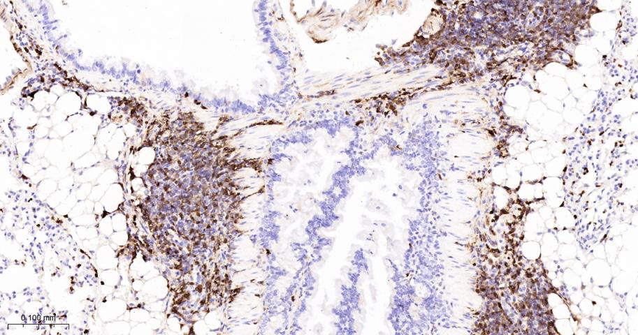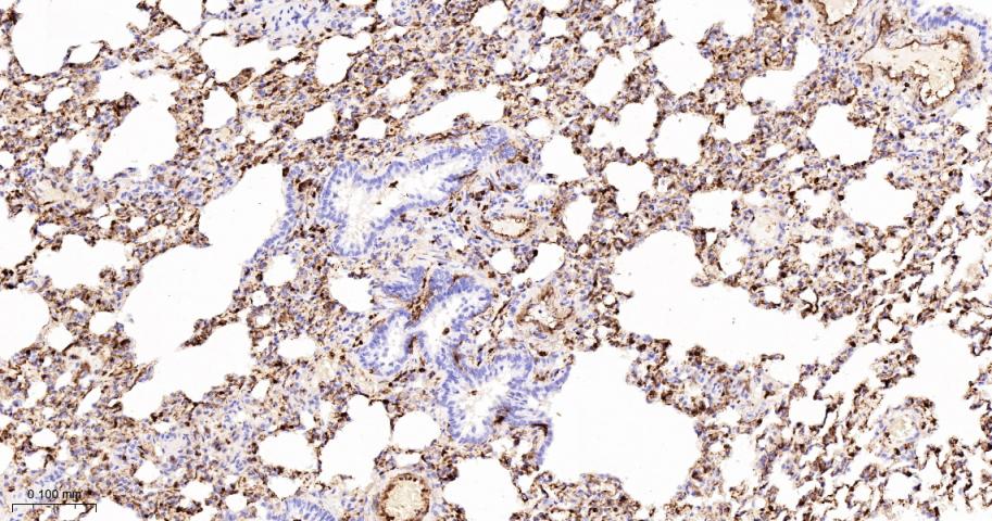 Paraformaldehyde-fixed, paraffin embedded Mouse Lung; Antigen retrieval by boiling in sodium citrate buffer (pH6.0) for 15 min; The section was incubated with S100A4 Monoclonal Antibody, Unconjugated (bsm-55522R) at 1:500 overnight at 4°C, followed by conjugation to the bs-0295G-HRP and DAB (C-0010) staining.