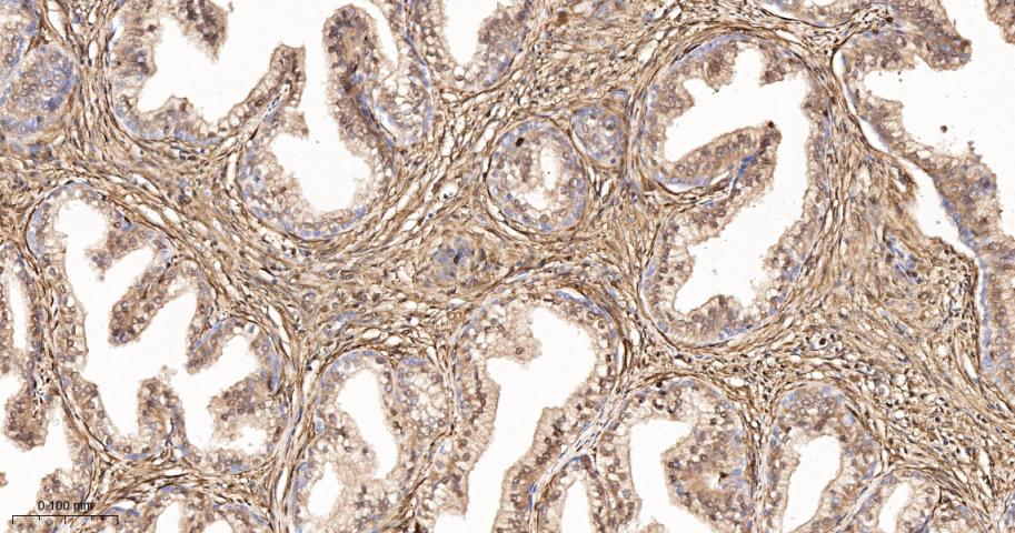 Paraformaldehyde-fixed, paraffin embedded Human Prostate Cancer; Antigen retrieval by boiling in sodium citrate buffer (pH6.0) for 15 min; The section was incubated with S100A4 Monoclonal Antibody, Unconjugated (bsm-55522R) at 1:500 overnight at 4°C, followed by conjugation to the bs-0295G-HRP and DAB (C-0010) staining.