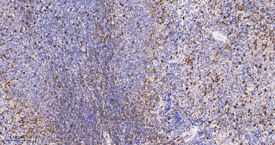 Paraformaldehyde-fixed, paraffin embedded Mouse Spleen; Antigen retrieval by boiling in sodium citrate buffer (pH6.0) for 15 min; The section was incubated with S100A4 Monoclonal Antibody, Unconjugated (bsm-55522R) at 1:500 overnight at 4°C, followed by conjugation to the bs-0295G-HRP and DAB (C-0010) staining.