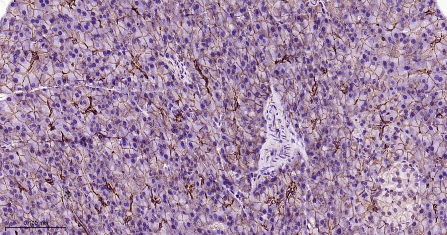 Paraformaldehyde-fixed, paraffin embedded Rat Liver; Antigen retrieval by boiling in sodium citrate buffer (pH6.0) for 15 min; Antibody incubation with beta Catenin Monoclonal Antibody, Unconjugated(bsm-55526R) at 1:200 overnight at 4°C, followed by conjugation to the bs-0295G-HRP and DAB (C-0010) staining.