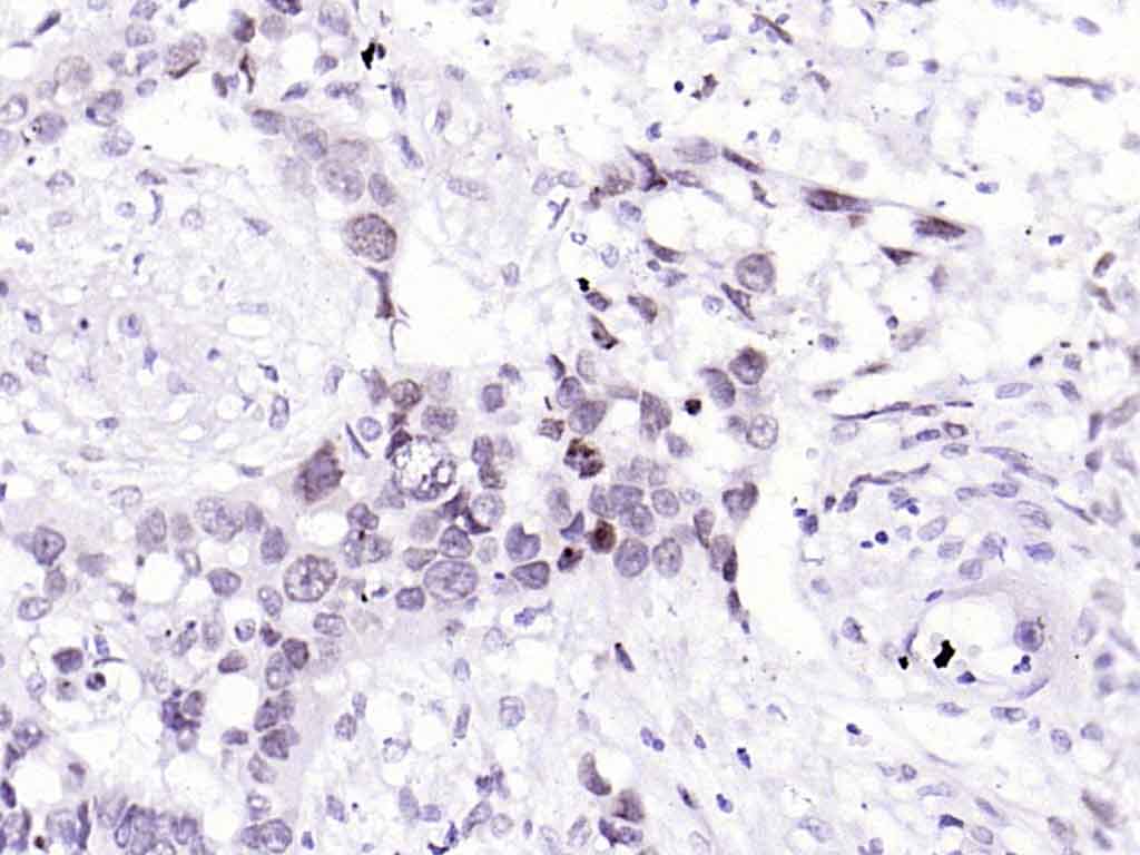 Paraformaldehyde-fixed, paraffin embedded (Human esophageal cancer); Antigen retrieval by boiling in sodium citrate buffer (pH6.0) for 15min; Block endogenous peroxidase by 3% hydrogen peroxide for 20 minutes; Blocking buffer (normal goat serum) at 37°C for 30min; Antibody incubation with (BANF1) Monoclonal Antibody, Unconjugated (bsm-54435R) at 1:200 overnight at 4°C, followed by operating according to SP Kit(Rabbit) (sp-0023) instructionsand DAB staining.